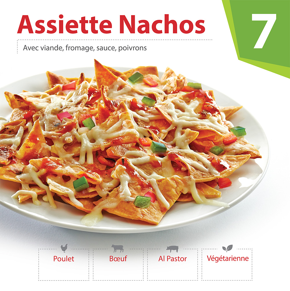 Menu design created for a mexican fast food restaurant located in a mall food-court.
